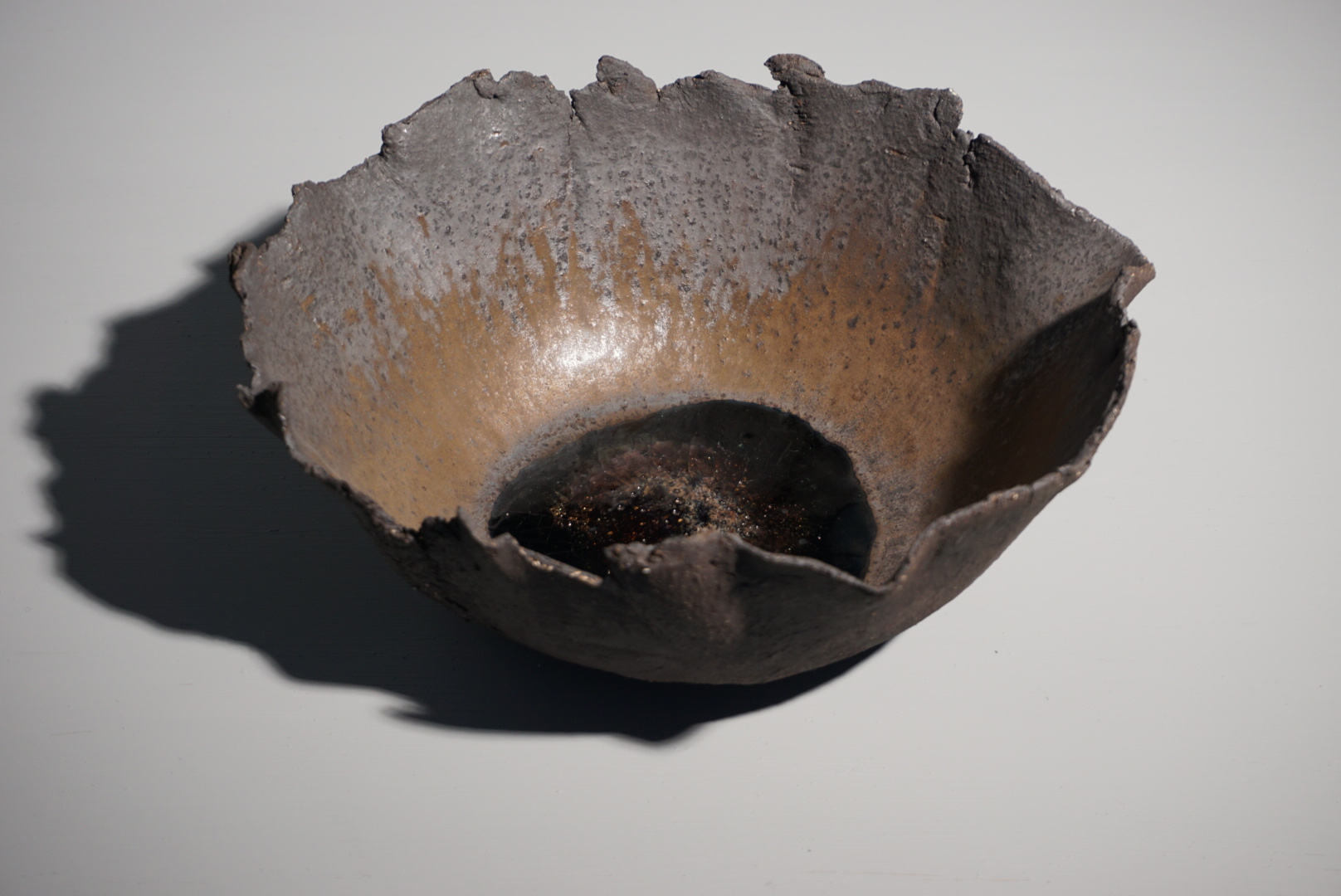 + Free ShippingBlack ceramic bowl with melted glass puddle inlay
